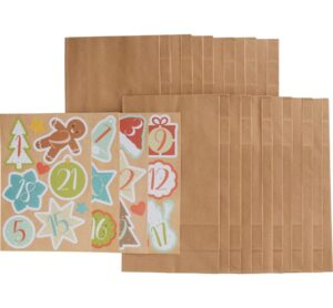 Ein wunderschönes Adventskalender-Set „“Happy Christmas““ aus Kraftpapiertüten. Die Kraftpapiertüten haben eine Größe von ca. 21 x 12 x 6 cm mit einem Papiergewicht von ca. 70 g/m². Das Set enthält alles, was benötigt wird. Somit kann mit dem Gestalten gleich begonnen werden. Neben den Papiertüten enthält das Set auch 24 Zahlensticker (ca. 3,8 x 3,8 – 7,4 x 4,4 cm) sowie 14 zusätzliche Aufkleber in Form Stern und Herz (ca. 1,3 x 1,3 – 2,0 x 1,7 cm). Diese Aufkleber verteilen sich auf 4 Bogen und eignen sich hervorragend zum Verzieren der Kraftpapiertüten. Ergänzt mit etwas Dekoband, kleinen Anhängern und weiteren Dekorationen wird der Adventskalender ganz einzigartig und individuell. Die Tüten bieten ausreichend Platz für kleine Geschenke und Leckereien. Ein selbstgebastelter Adventskalender ist immer eine tolle Überraschung für die Liebsten. Anzahl Teile: 28 Grammatur: 70 g/m² Länge: 12 cm Breite: 6 cm Höhe: 21 cm Material: Kraftpapier