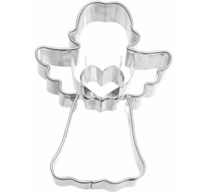 Mit dieser Ausstechform „“Engel mit Herz““ wird es himmlisch. Die Form aus rostfreiem Edelstahl ist ca. 7,0 cm lang und ca. 6,0 cm breit. Die Höhe beträgt ca. 2,5 cm. Mit Innenprägung für detailreiche Kekse. Weihnachten, das Fest der Liebe! Mit diesem Ausstecher entsteht eine persönliche Aufmerksamkeit für Ihre Liebsten. Kneten Sie einen leckeren Plätzchenteig und stechen vorsichtig den Engel mit Herz aus. Nach dem Backen kann dieser mit Zuckerguss, Perlen, Fondant, Marzipan und Schokolade nach eigenem Geschmack verziert werden. Liebevoll in einer Geschenktüte verpackt ist schnell ein prima Geschenk gezaubert. Extra-Tipp: Auch das Arbeiten mit Salzteig und Modelliermassen ist möglich. Die Reinigung des Ausstechers kann ganz einfach in der Spülmaschine erfolgen. Lebensmittelecht Länge: 7 cm Breite: 6 cm Höhe: 2.5 cm Material: Edelstahl