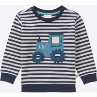 Dieses Baby-Jungen-Sweatshirt von Liegelind zeichnet sich durch ein niedliches Design mit Traktor-Applikation aus. Das gestreifte Muster sorgt für einen verspielten Look, während das weiche Material für angenehmen Tragekomfort sorgt. Ein Highlight ist das Fenster zum Öffnen, das zusätzliche Freude beim Tragen bietet. Gestreiftes Design in ecru/blau Traktor-Applikation mit funktionalem Fenster Mit hohem Baumwollanteil OEKO-TEX® Standard 100