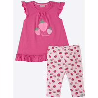 Dieses Baby-Mädchen-Set mit Flügelarmen von Liegelind bietet einen verspielten Look durch das applizierte Pailetten-Erdbeer-Motiv auf dem Shirt. Das Set sorgt dank Rüschenvolants und liebevoller Details für ein besonders niedliches Erscheinungsbild und überzeugt durch weiche Materialien, die angenehmen Tragekomfort bieten. Verspieltes Design mit Erdbeer-Motiv Mit Rüschenvolants und Flügelärmeln Praktisches Baby-Mädchen-Set, 2-teilig Elastischer Bund für bequemen Sitz Mit hohem Baumwollanteil OEKO-TEX® Standard 100