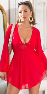 Babydoll Cover up-Kleid Mesh Minikleid Transparent Strandkleid Kleid mit Langarm und V-Ausschnitt