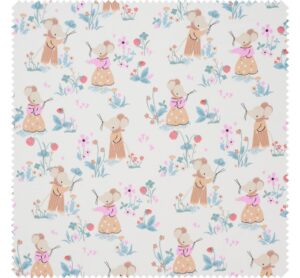 Der fröhliche Baumwoll-Stoff „“Garten-Mäuse““ bringt mit seinem charmanten Design ein Stück Frühlingszauber in deine Nähprojekte! Der liebevoll gestaltete Motivstoff zeigt ein Mäusepaar auf einer blühenden Wiese, in zarten Farben, die einfach Freude ausstrahlen: Rot-Orange, Hellblau, Mint und Rosa auf einem beruhigenden Ecru-Untergrund. Ob Taschen, Kissenbezüge oder Kinderkleidung – mit diesem Motiv setzt du spielerische Akzente. Dieser Motivstoff besteht zu 100 % aus Baumwolle und weist eine Breite von 150 cm auf, davon sind 147 cm bedruckt. Die feine Grammatur von 115 g/m² verleiht dem Stoff eine besondere Leichtigkeit, die sich perfekt für vielfältige Anwendungen eignet. Wegen des maximalen Schrumpfungsgrades von 6 % wird empfohlen den Stoff vor dem Nähen im Schonwaschgang bei bis zu 30 °C zu waschen. Ideal für kreative Köpfe, die einzigartige und persönliche Projekte gestalten möchten. Lass deiner Fantasie freien Lauf und verwandle deine kreativen Ideen in wunderschöne Stoffkreationen! Hol dir den Baumwoll-Stoff „“Garten-Mäuse““ jetzt und starte dein nächstes Nähabenteuer! Dieser Artikel wird auf deine persönlichen Bedürfnisse zugeschnitten. Bitte beachte die abweichenden Regelungen im Widerrufsrecht. Die Ballenlänge gibt die maximale Stofflänge am Stück an. Bestellmengen darüber hinaus, werden in mehreren Abschnitten geliefert. Ballenlänge = 20 m. Motivgröße: 0.5 – 7 cm Meterware Grammatur: 115 g/m² Breite: 150 cm