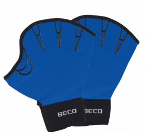<p>Wie Schwimmflossen für die Hände… optimal im Einsatz für Schwimm-, Kraft- und Koordinationstraining geeignet.<br />Durch den Einsatz der Beco Aquahandschuhe vergrößert sich der Wasserwiderstand, so wird dein Aquafitnesstraining noch effektiver. Die Oberkörpermuskulatur, insbesondere Arme, Rücken und Schultern werden gestärkt.<br /><br />Die Neoprenhandschuhe lassen sich perfekt mit einem praktischen Klettverschluss am Handgelenk anpassen.</p><ul><li><strong>Größe L</strong></li><li>Klettverschluss am Handgelenk</li><li>Griffige Neopreninnenhandfläche in Schwarz</li><li>Material: <strong>Neopren</strong></li></ul><p>Gibt es in drei verschiedenen Größen, farbcodiert<br />S = türkis, entspricht etwa Handschuhgröße 7<br />M = rot, entspricht etwa Handschuhgröße 8<br /><strong>L = blau, entspricht etwa Handschuhgröße 9</strong><br /><br />Da die Handschuhe vorne offen sind, ist bei der Größenwahl die Länge der Hand also absolut zu vernachlässigen.</p>