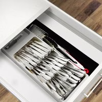 Der ausziehbare Besteck-Organizer von Home ist die ideale Lösung, um Ordnung in Ihre Küchenschublade zu bringen. Mit sechs Fächern und einem verschiebbaren Einsatz bietet er flexible Aufbewahrungsmöglichkeiten. Der Organizer ist größenverstellbar durch ein ausziehbares Fach, wiederverwendbar und nachhaltig. Sechs praktische Fächer Größenverstellbar durch ausziehbares Fach Verschiebbarer Einsatz für Flexibilität Gut zum Organisieren in der Küchenschublade Nachhaltig und wiederverwendbar Größenverstellbar: 16,5x41x 5cm / 29x41x5cm Hinweis: Dekoration nicht im Lieferumfang enthalten.