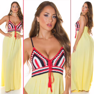 Boho V-Neck Träger Maxi Kleid mit Deko Häkel Partie