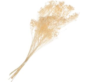 Das natürlich getrocknete Broom Bloom hat unterschiedlich lange Stiele mit einer Maximallänge von ca. 40 cm. Je Bund sind ca. 20 g enthalten. Broom Bloom ist ähnlich wie Schleierkraut mit kleinen stabilen Blüten, die einen Ø von ca. 0,3 cm besitzen. Perfekt zum Basteln von Karten und Geschenkverpackungen, aber auch für floristische Ideen wie Trockenblumensträuße, Gestecke und Kränze. Tipp: Stellen Sie die Trockenblumen nicht ins Fenster oder in direktes Sonnenlicht, damit sie nicht ausbleichen und Sie noch lange Freude daran haben. Gewicht: 20 g Blüten-Durchmesser: 0.3 cm Länge: 40 cm Material: Naturmaterial