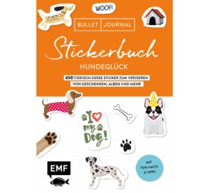 Das Buch „“Bullet Journal Stickerbuch – Hundeglück““ umfasst 80 Seiten und beinhaltet über 650 tierisch-süße Sticker rund um Hunde. Diese Sticker lassen die Herzen von Hunde-Fans höher schlagen! Es dreht sich alles um farbige Motive, Schmuckelemente, Muster und Sprüche mit Hunden. Von Pfoten über Hunde bis hin zu Accessoires ist alles mit dabei. Ideal für die Gestaltung von Bullet Journals, Stickeralben, Grußkarten, Geschenkverpackungen oder auch Reisetagebüchern. Die Aufkleber haben alle eine beschreibbare Oberfläche. Neben der umfangreichen Stickersammlung sind Tipps und Informationen zum Bullet Journaling sowie Fun Facts zu den süßen Vierbeinern enthalten. Selbstklebend Breite: 14.8 cm Höhe: 21 cm
