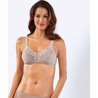 Diskreter Damen-BH von Body Ohne Bügel Optisch zweigeteilter Cup Unten mit edlem Jacquard-Muster Oben mit halbtransparenter Spitze Mit hübscher Schleife Bezaubernder Look Mit breiten Trägern Optimale Passform dank Elasthan Klassisches Basic