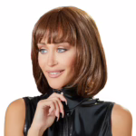 Schwarze Kurzhaarperücke in Kinnlänge mit Pony, für einen aufregenden Typwechsel in Sekunden. Der Pony kann bei Bedarf gekürzt werden.