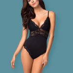 Obsessive 873-SEA-1 schwarzer Body mit Schmuckdetails String-BH-Kombination aus Spitze & Satin, verstellbar, abnehmbar, sexy & elegant zugleich