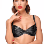Powerwetlook-BH F174 von Noir Handmade mit handgefertigten Zierfalten, verstellbaren Trägern und klassischem Hakenverschluss hinten – Sexy Powerwetlook-BH