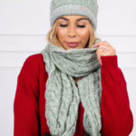 Zopfmuster Winter Set aus Mütze und Schal mit Kunstfell Pompons – Sexy Mütze-Schal-Kombi