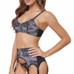 Cottelli LINGERIE 3 teiliges Dessous Set mit Neckholder BH, Strapsgurt und String – Sexy Dessous Set