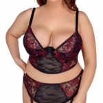Cottelli Verführerisches Dessous-Set mit Spitze und Satin-Zierschnürungen – Longline-BH und Straps-Slip mit Spitze und Satin-Details