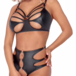 Cottelli LINGERIE Stretch Wetlook BH Ouvert Slip Set Ringe und elastischen Riemchen – Sexy Soft-BH und Taillen-Slip ouvert im Set