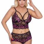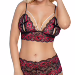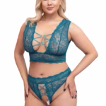 Cottelli Verführerisches Spitzen-Set: Tief ausgeschnittenes Bralette und ouvert String mit dekorativen Details – Bralette und ouvert String mit dekorativen Ringen und Stretchbändern