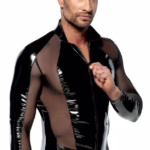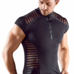 Herren Shirt Figurbetonendes Shirt aus weicher Mikrofaser mit transparenten Streifen-Einsätzen, Stehkragen und Reißverschluss – Betonendes Shirt mit Transparente Streifen-Einsätzen