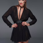 Sexy Minikleid CR4100 in Schwarz von Chilirose Langarm Kleid aus transparentem Netz mit aufregendem Lochmuster und tiefem Dekolleté-Ausschnitt – Chilirose CR4100 Minikleid Schwarz