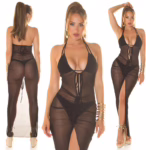 Vokuhila Strandkleid mit Neckholder Maxikleid Mesh Cover up Kleid Transparent mit Bindebändchen – Sexy Kleid