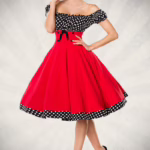 BELSIRA Retrokleid im 50er-Jahre-Stil mit Zierknöpfen, weitem Tellerrock und femininer Silhouette für stilvolle Eleganz – Schulterfreies Swing-Kleid