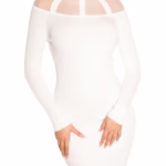 Koucla Figurbetonendes langärmliges Rippstrick-Minikleid mit transparenten Tüll-Einsätzen und markantem Halsband-Effekt für einen ausdrucksstarken Look – Sexy Cocktail-Minidress mit transparentem Einsatz