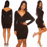 Cocktail Fledermaus Rippstrick Minikleid mit V-Neck und Deko Gürtel – Sexy Ripp-Minidress im Cocktail-Stil