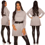 Fledermaus Strickleid mit Rollkragen und Gürtel – Sexy Rollkragen-Minikleid mit Fledermaus-Ärmel