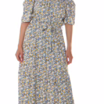 Off Shoulder Flower Printed Maxi Kurzarm Kleid mit Gürtel – Sexy Carmen-Kleid in Maxi-Länge