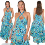 Coloured Maxi Neckholder Viskose Kleid mit Cutout – Sexy Sommer-Kleid im Neckholder-Style