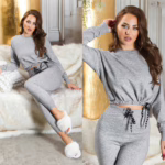 Basic Loungewear-Set Freizeit-Outfit Home-Anzug Crop Pullover Highwaist Hose Leggings Feinstrick 2-Teiler – Sexy Home-2-Teiler