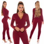 Business Wickel V-Neck Maxi Jumpsuit mit Deko Knöfpe – Sexy Jumpsuit