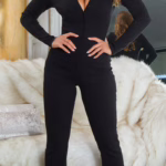 Langarm Wet Look Maxi Overall Long Catsuit V-Neck Jumpsuit mit Zipper Reißverschluss – Sexy Catsuit