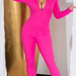 Uni Langarm Turtel Neck Maxi Jumpsuit mit Zipper – Sexy Freizeit-Overall im Long-Style