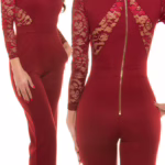 Langarm Long Bootcut Jumpsuit mit Deko Spitze und Zipper – Sexy Overall