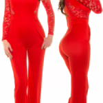 Langarm Long Bootcut Jumpsuit mit dekorativer Spitze und durchgehendem Zipper aus figurbetontem Stretch für markante Abendstyles von Koucla – Sexy Overall