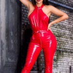 Hot Zipper Maxi Jumpsuit im Leder-Look mit Gürtel – Sexy Overall