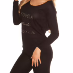 Oversize V-Neck Strick Pullover mit Schriftzug – Sexy Pullover