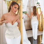 Weißes Kombi-Set für Damen mit ausgestellter Hose und Bandeau-Top luftiges Sommer-Outfit mit Reißverschluss, figurbetont und stilvoll – Top und Hose