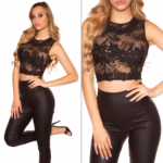 Spitze Crop Top Bauchfrei Deko Stickerei Transparent Ärmellos Zipper