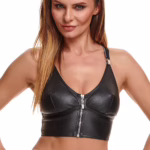 Wetlook Crop Top zum Binden aus Stretch-Material mit glatter Oberfläche, Hoher Rundhals-Ausschnitt und Schnürbändchen – Sexy Party-Top im Crop-Style