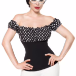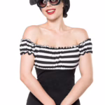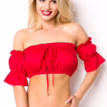 KouCla Bauchfreies Chiffon-Top mit Carmen-Ausschnitt und langen Ärmeln leicht transparent und luftig mit elastischen Bündchen – Sexy Carmen-Top