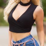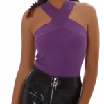 Schwarzes Powerwetlook Top F155 mit tiefem Ausschnitt und verstellbarer Schnürung für aufregende Auftritte von Noir Handmade