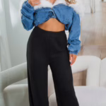 Highwaist Stoffhose Marlene Business Hose mit weitem Bein Schlaghose Bügelfalte und Krempel – Sexy Stoffhose