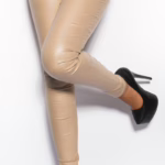 Leder Look Hüft Treggings mit Deko Zipper Taschen – Sexy Treggings