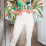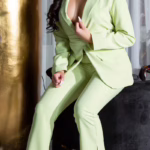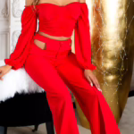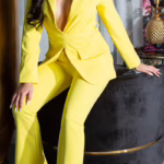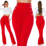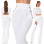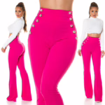 Stoff Business High Waist Schlag Hose mit Deko Knöpfe – Sexy Hose
