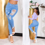 Ripped Skinny Push up High Waist Jeans mit XL-Löcher – Sexy Jeans