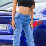 Trendige Low Waist Cargo Jeanshose mit Taschen – Sexy Jeans