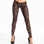 Schwarze Wetlook-Leggings 18121 mit transparentem Tüll und Zierbändern ein Eyecatcher für aufregende Nächte von SARESIA