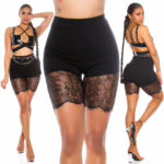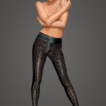 Schwarze Wetlook-Leggings 18121 mit transparentem Tüll und Zierbändern ein Eyecatcher für aufregende Nächte von SARESIA – Wetlook-Leggings