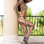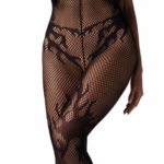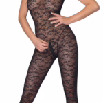 Sexy Bodystocking CR4091 von Chilirose in Schwarz mit Schulter-Schnürung und offenem Schritt elastisches Netz mit floralem Muster für verführerische Nächte